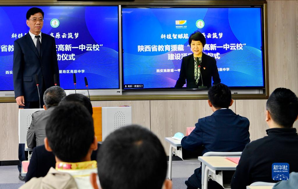 当日,陕西省教育援藏“云校”建设项目正式启动。陕西省西安高新第一中学和西藏拉萨阿里地区高级中学结成“对子”,借助5G网络开展教学教研互动,助力提升教育水平。