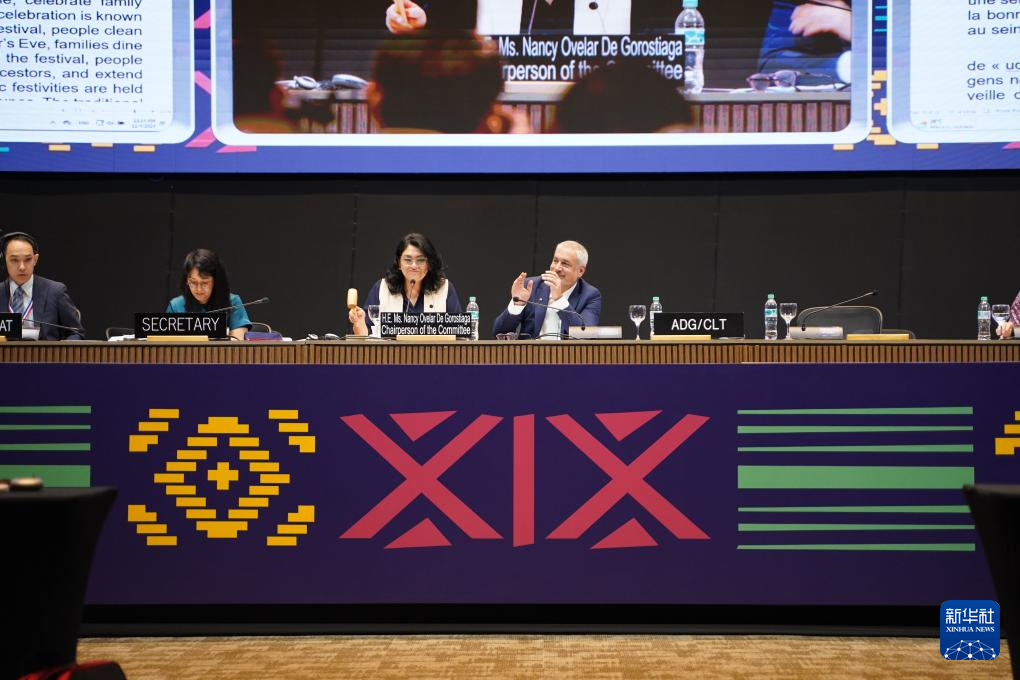 这是12月4日在巴拉圭亚松森拍摄的联合国教科文组织保护非物质文化遗产政府间委员会第19届常会评审现场。新华社记者 朱雨博 摄