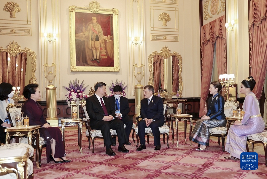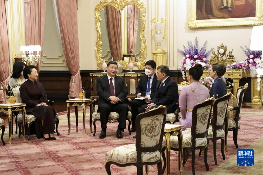 当地时间11月18日晚,国家主席习近平和夫人彭丽媛在曼谷大王宫会见泰国国王哇集拉隆功和王后素提达。