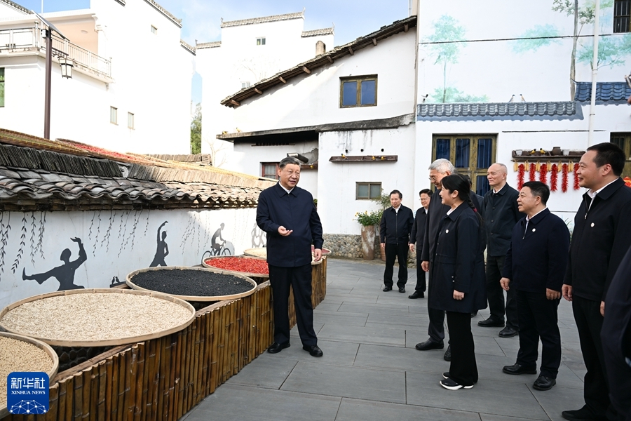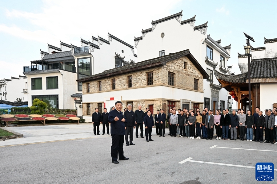 10月10日至13日,中共中央总书记、国家主席、中央军委主席习近平在江西考察。这是11日下午,习近平在上饶市婺源县秋口镇王村石门自然村考察时,同村民们亲切交流。