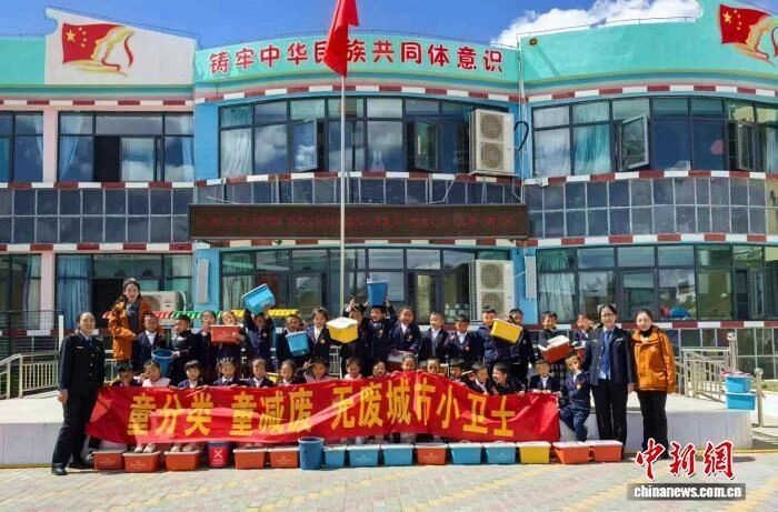 图为阿里地区参与“无废校园”建设小卫士和相关工作人员合影。阿里地区生态环境局 供图