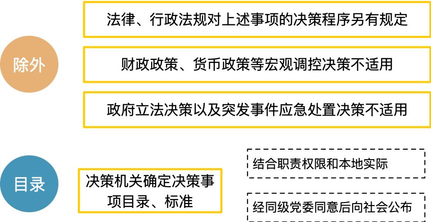 答:条例通过“列举+排除”框定重大行政决策事项的范围,允许决策机关结合职责权限和本地实际确定决策事项目录、标准,经同级党委同意后向社会公布并根据实际变化调整。列举的事项包括:一是制定有关公共服务、市场监管、社会管理、环境保护等方面的重大公共政策和措施;二是制定经济和社会发展等方面的重要规划;三是制定开发利用、保护重要自然资源和文化资源的重大公共政策和措施;四是决定在本行政区域实施的重大公共建设项目;五是决定对经济社会发展有重大影响、涉及重大公共利益或者社会公众切身利益的其他重大事项。同时,明确排除了3类事项,分别是财政政策、货币政策等宏观调控决策,政府立法决策,突发事件应急处置决策。