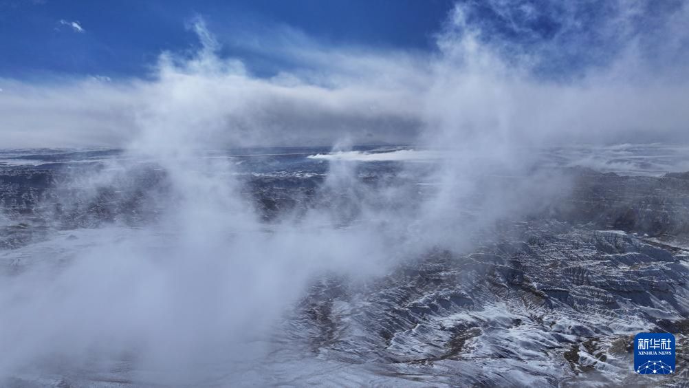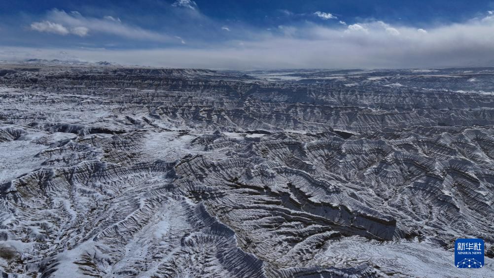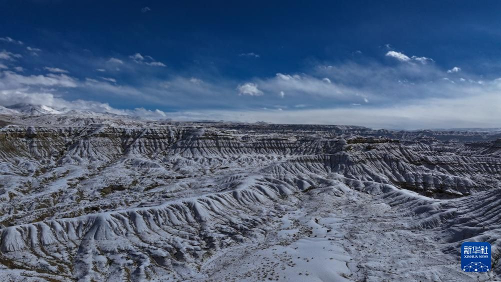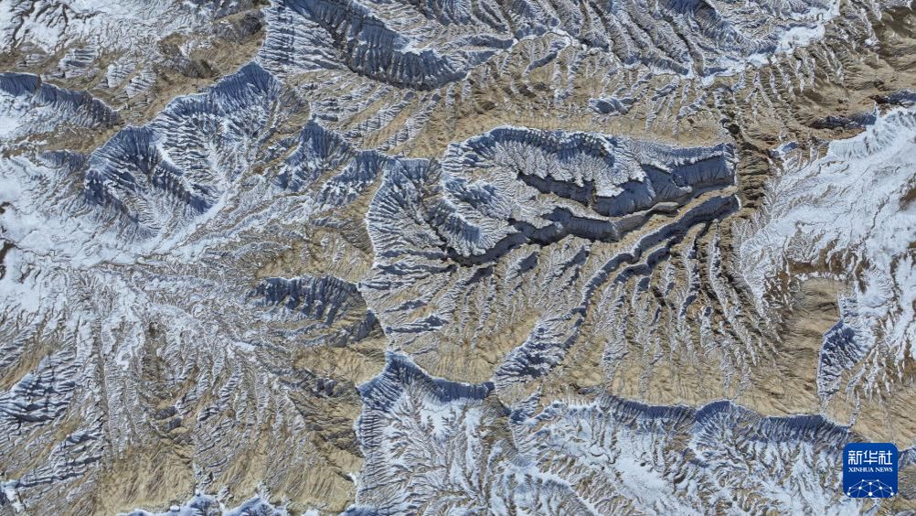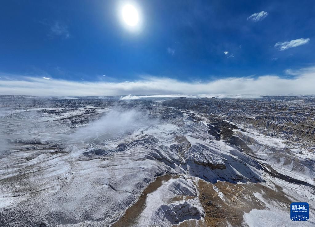 雪后札达土林(12月28日摄,无人机照片)。新华社发(旦真次旦 摄)