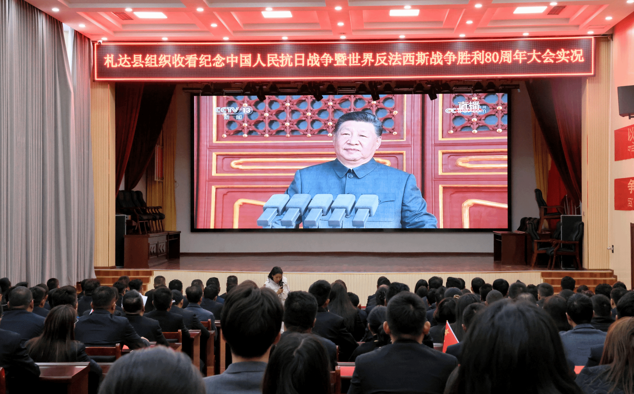 9 月 3 日上午,纪念中国人民抗日战争暨世界反法西斯战争胜利80周年大会在北京隆重举行,札达县委、人大、政府、政协主要领导,县(中)直各单位、各乡(镇)、村(社区),各学校、寺庙通过电视、网络等多种渠道,集中收听收看了纪念中国人民抗日战争暨世界反法西斯战争胜利80周年大会盛况,共同见证了这一激动人心的历史时刻。