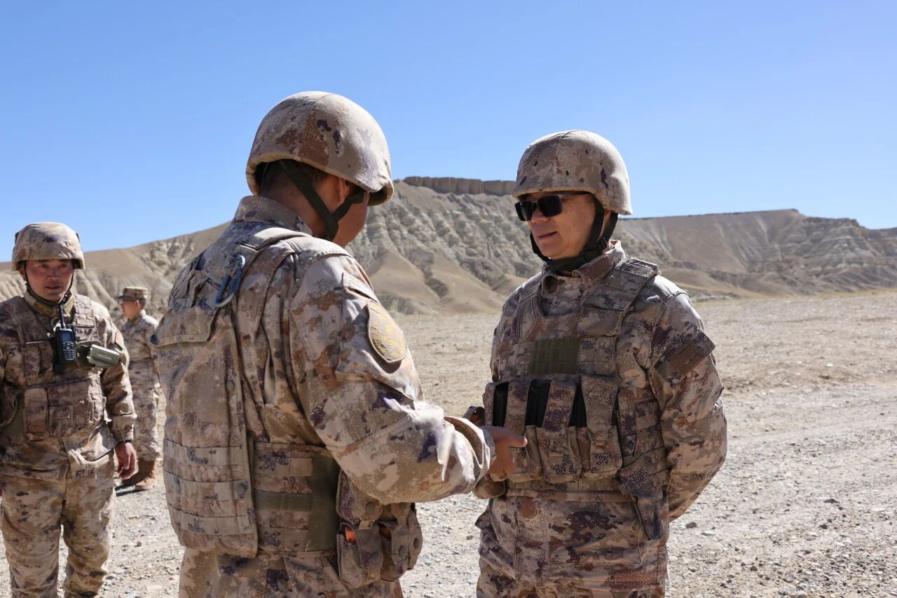 在训练场,全体参加人员头戴钢盔、身着多功能战术背心,近距离观摩新型武器装备,学习轻武器分解结合,亲身感受了解军改以来新装入列、新质战斗力生成、整体实战能力跃升情况和现代化军事装备的发展与应用,体会练兵备战的浓厚氛围。