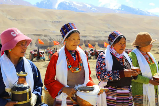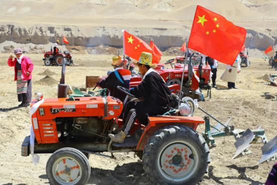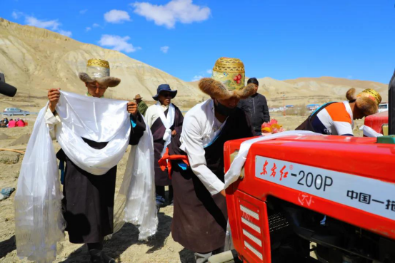 仪式上,身着节日盛装的群众将一条条哈达系在整齐排列的十余辆犁地机上,互敬青稞酒和糌粑,并以传统的“煨桑”仪式,祈愿今年风调雨顺、五谷丰登。随后,汉子们开着犁地机翻地或是挥着铁锹施肥,妇女们则将一把把青稞种子挥洒在充满希望的土地上,每个人脸上都洋溢着对未来美好生活的憧憬和向往。