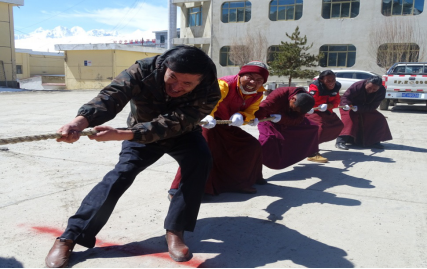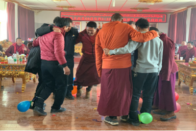 当天上午,涉宗领域全体人员在县文化广场参加了升国旗仪式,并观看新旧西藏摄影展,随后,在县政协会议室举行了形式多样、内容丰富的“忆往昔·话今生·共圆梦”主题新旧对比故事会、“国法高于教规 守法先于守戒”主题宣讲、“四讲四爱”、“遵行四条标准 争做先进僧尼”为主题的书法比赛及拔河、抢凳子等文体活动,通过喜闻乐见、寓教于乐的方式将爱国爱教融入到系列活动当中。
