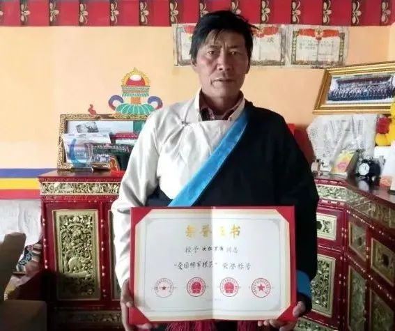 次仁罗布荣获全国“爱国拥军模范”荣誉称号。