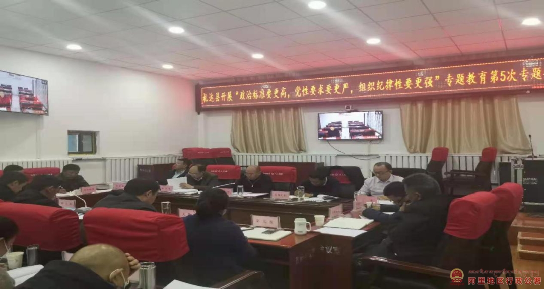 近日,札达县组织召开“政治标准要更高,党性要求要更严,组织纪律性要更强”专题教育第五次研讨会。会议由地区政协副主席、县委书记马庆林同志主持,会议以视频形式召开到乡镇一级,在家的县处级以上领导干部、县直各单位四级调研员、四级高级警长、专题教育办公室工作人员在主会场参会,部分县级领导和各乡镇党政正职在乡分会场参会。