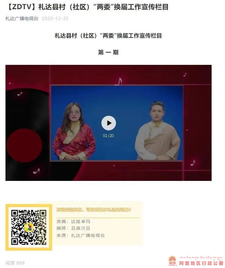 以电视上有画面、广播上有声音、村村有横幅、户户有人入、广告牌有内容、网络平台有专栏方式,线上线下充分结合,采取群众喜闻乐见、易于接受的形式,大力宣传换届政策法规、程序办法,使换届工作相关政策家喻户晓、人人皆知。截至目前,县、乡换届办及时在县城(乡镇)主要街道的醒目地点、各村社区空白墙面和人员集中的地方悬挂横幅120余条,张贴宣传标语100张,使每个墙面都变成了“会说话的墙”;第一书记、乡村振兴专干、驻村工作队员为成员的58支入户宣传组,通过走村入户、挨家走访大力宣传换届知识点,特别是宣传讲解与2017年换届时不同的各项政策和换届纪律要求,受教群众7000余人次;主要路段上设立3个大型宣传广告牌和26个小型宣传广告牌;创新制作5期《札达县村(社区)“两委”换届工作宣传栏目》,阅读人数超过8000余人、点赞人数超过200余人。同时,1月初县委组织部新开设“札达组工”微信公众平台,专题发布换届工作信息8篇。提高了换届纪律和政策要求在广大干部群众中的知晓率,形成了良好的社会舆论氛围和强大的声势,打造了良好的换届工作基础。