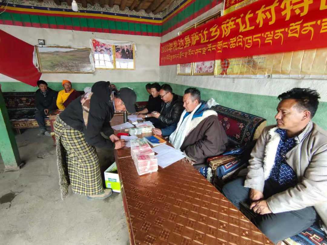 近日,西藏阿里地区札达县萨让乡萨让村当巴组举行2020年萨让村特色产品专业合作社分红仪式,分红资金共计238200元,其中惠及建档立卡贫困户25户65人123500元。
