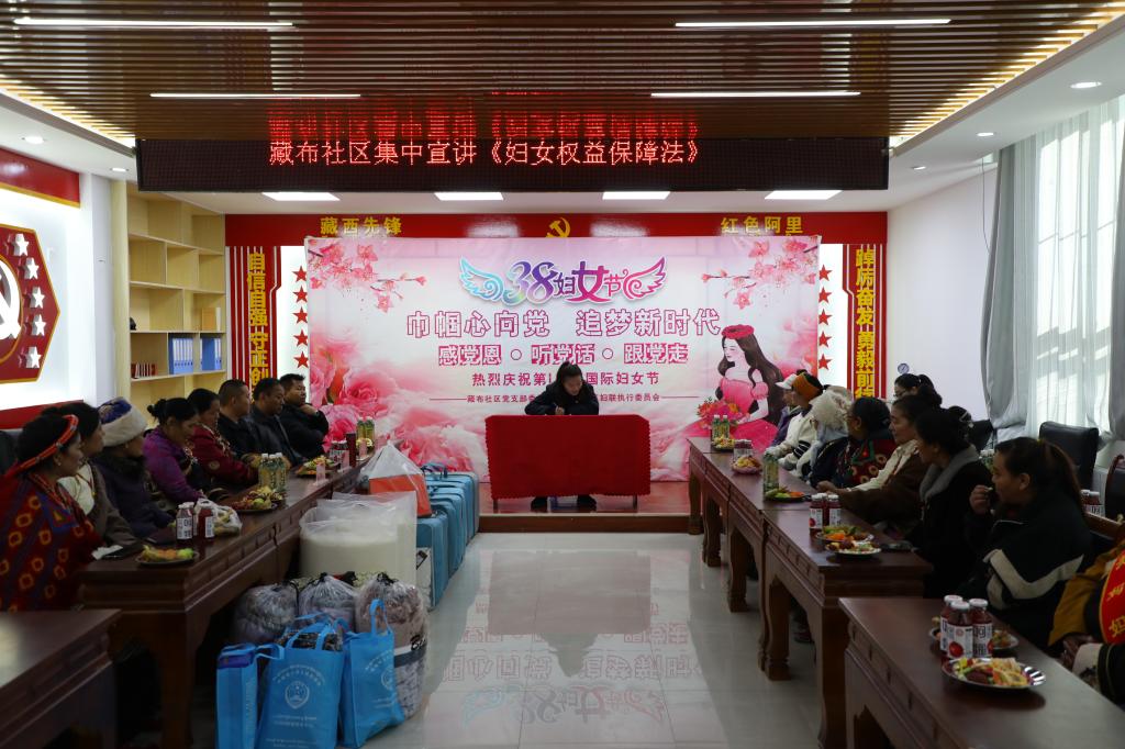 为庆祝三八妇女节的到来,3月8日,阿里地区噶尔县狮泉河镇藏布社区党支部积极部署,坚持“党建带妇建、妇建服务党建”的工作思路,开展“彰显魅力 致敬最美女性”为主题的三八妇女节系列活动。
