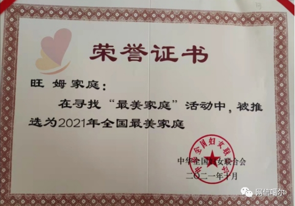 噶尔县旺姆家庭荣获全国“最美家庭”荣誉称号