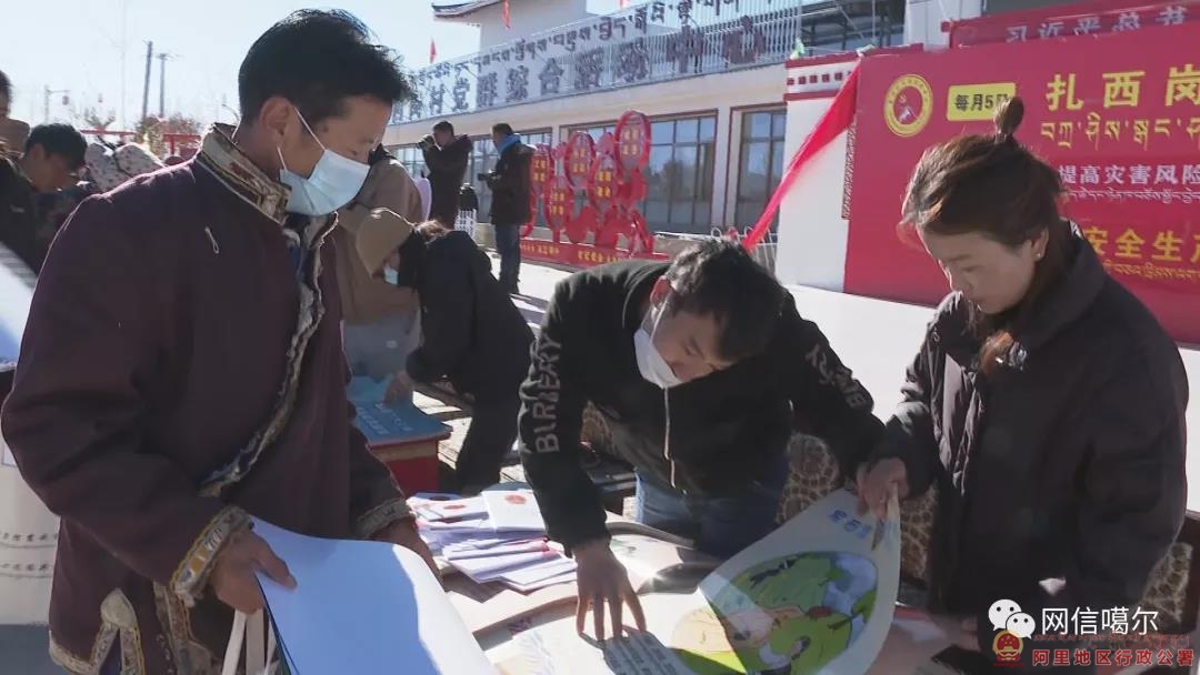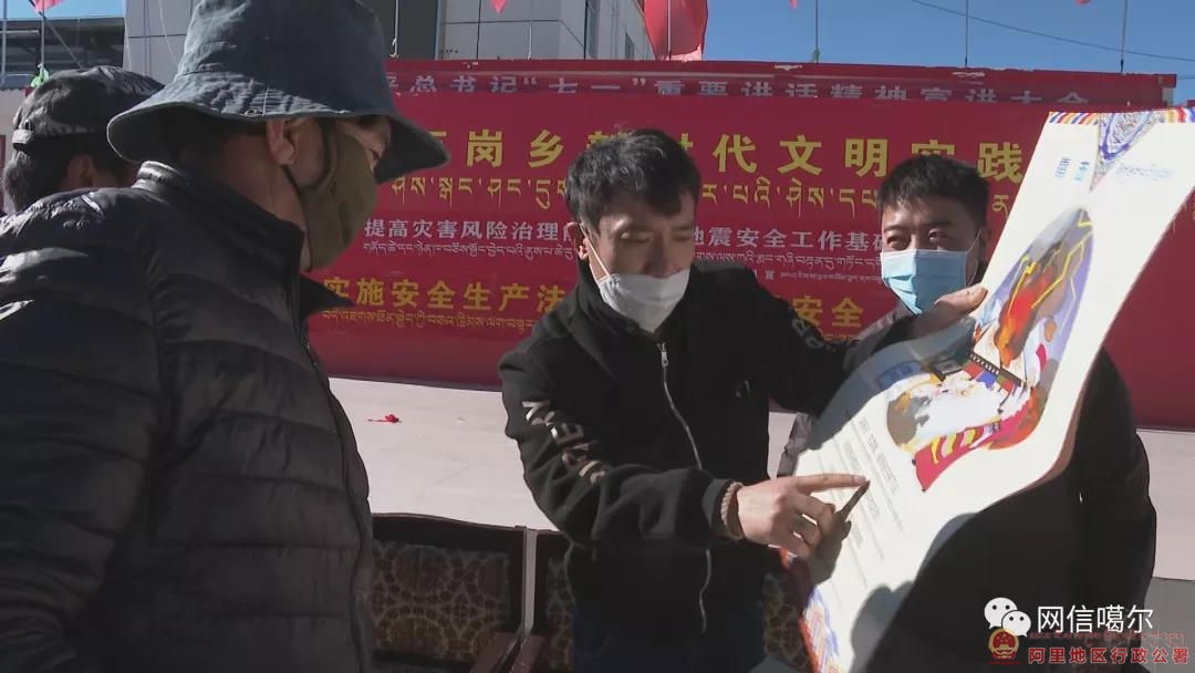 活动中,地区地震局工作人员通过地震科普道具,向扎西岗村农牧民群众普及了地震形成的缘由、防震避险知识以及正确的自救常识。噶尔县应急管理局还通过悬挂横幅、发放宣传手册、流动宣传车等方式,普及了最新修订的“安全生产法”、自然灾害防治、自然灾害风险普查等知识,提高了扎西岗乡群众防震减灾意识和应急避险能力,掌握了更多的自救、逃生、自我保护的技能。
