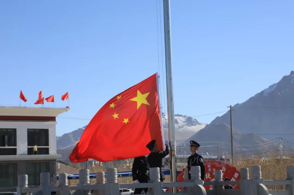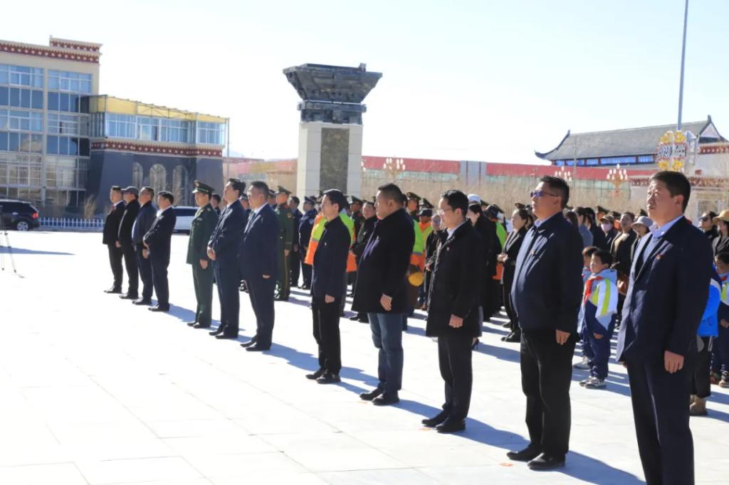 全县在家县级领导、县直各部门主要领导、居民群众、学生、驻噶部队、武警官兵、公安干警等280余人参加了“升国旗、唱国歌”仪式。