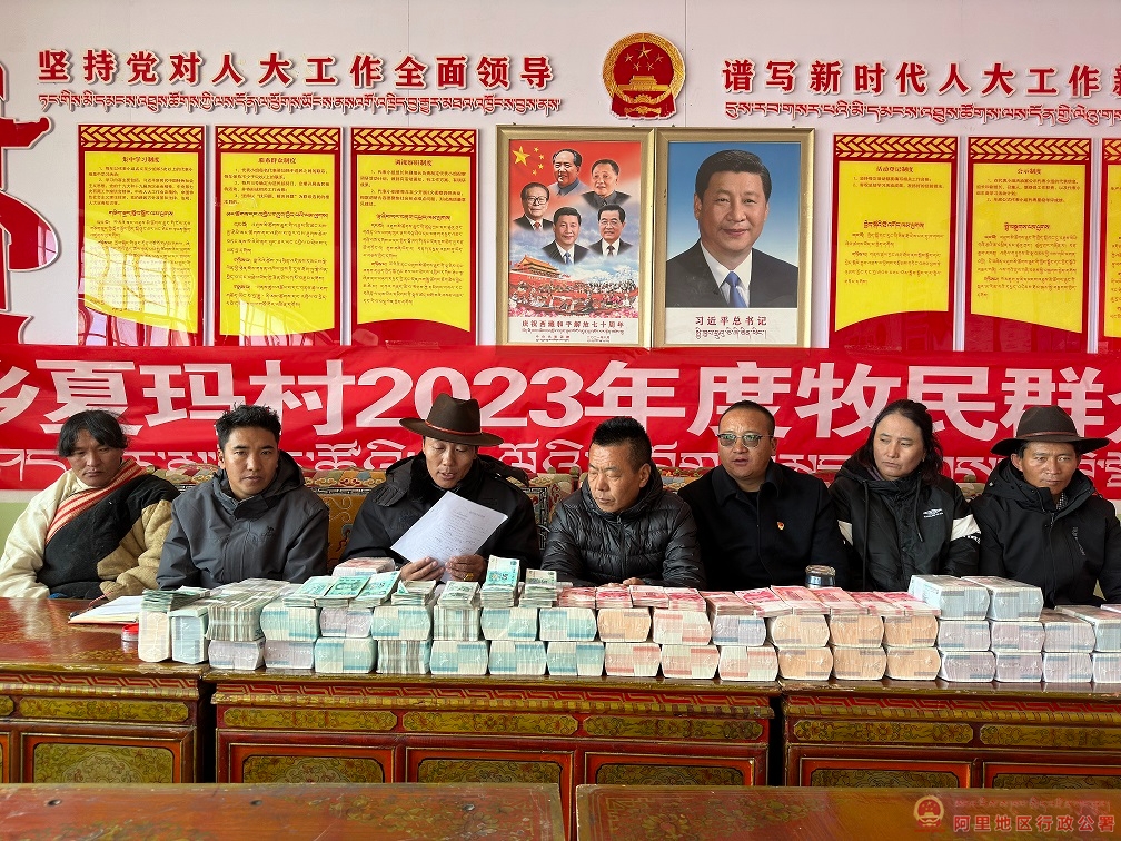 12月11日,文布当桑乡夏玛村举行“党建领航产业强乡”产业收入分红仪式,由革吉县政府副县长次仁拉巴主持。乡党委主要领导、驻村工作队、村“两委”班子、各组组长、“双联户”户长、各组群众参加分红仪式。