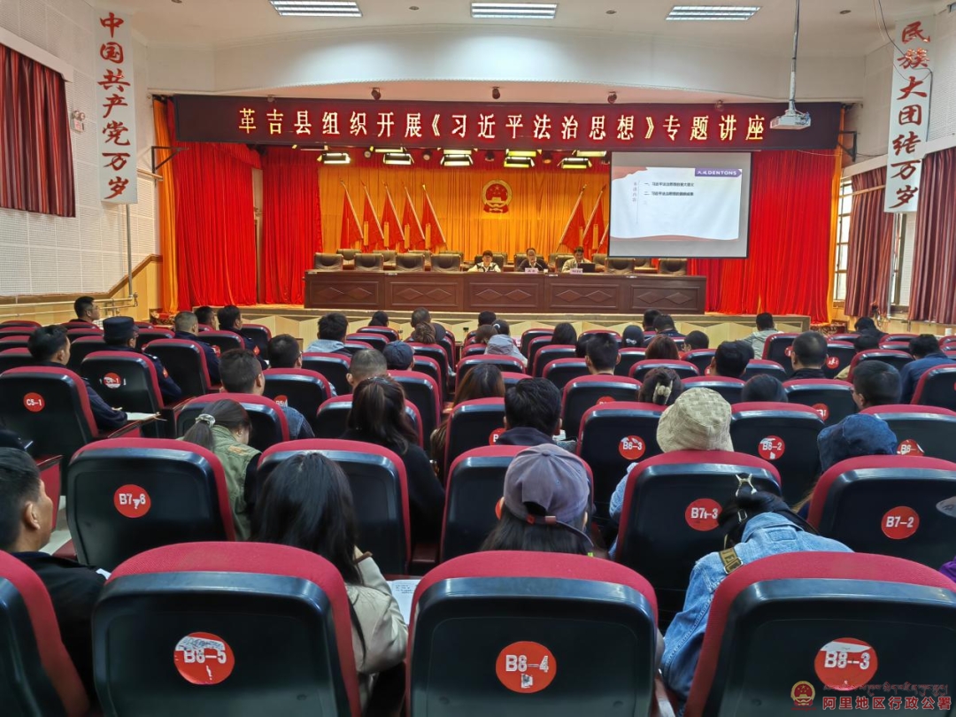 为深入学习贯彻习近平法治思想的重大意义,丰富内涵、精神实质和实践要求,引导全社会坚定不移走中国特色社会主义法治道路,坚持将学习宣传贯彻习近平法治思想作为全民普法的首要政治任务,进一步增强领导干部的依法行政意识,全面落实“八五”普法规划,让法治走进机关,使领导干部自觉遵纪守法、依法行政,切实推动法治政府建设工作。8月1日至2日,革吉县司法局邀请政府法律顾问北京大成(拉萨)律师事务所两名律师为全县干部职工讲解了习近平法治思想及依法行政与行政执法相关理论知识,进一步夯实了全县干部职工的法治知识。在家县级领导、县(中)直各单位、阿里地区生态环境局(革吉)分局、革吉镇全体在家干部职工共100余人参加讲座。