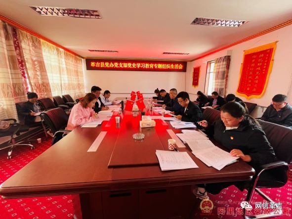近日,革吉县党办党支部在县委办公室二楼会议室召开党史学习教育专题组织生活会。行署副专员、县委书记辜建中以普通党员身份参加革吉县党办党支部党史学习教育专题组织生活会,同支部党员一起,交流学习体会,着力推动党史学习教育成效不断转化为工作实效。