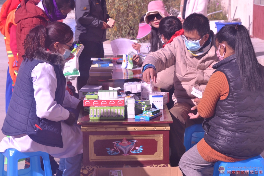 近日,革吉县总工会组织开展“五送”暨“送药送送温暖”活动。活动邀请革吉县人民医院援藏医生为群众现场义诊送药。