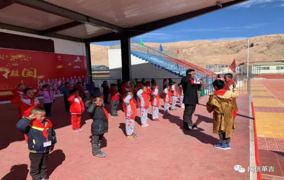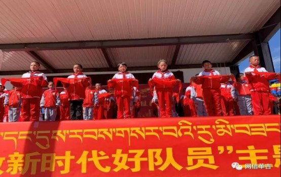 为庆祝中国少年先锋队建队70周年,革吉县完全小学举行新生入队仪式。