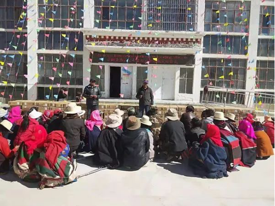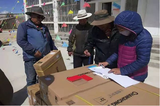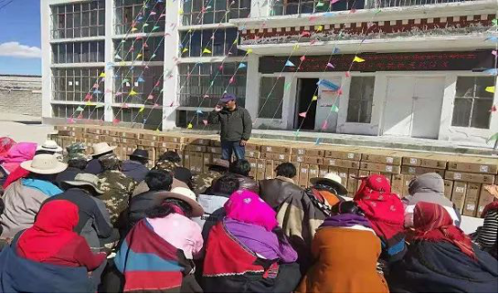 革吉县盐湖乡羌麦村举行为建档立卡贫困户赠送“电视机”仪式