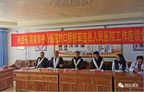 2019年9月22日,由阿里地区卫健委援藏副主任陈保军同志陪同的渭南市卫生健康委人事科科长吴哲、医政科科长陈衡一行在革吉县人民医院召开渭南市中心医院帮扶座谈会,县卫健委主任次巴珠同志主持。