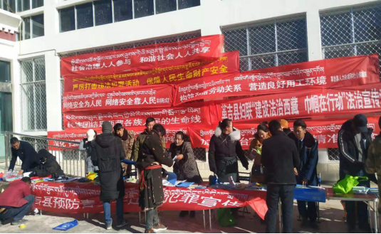 近日,革吉县综治办、统战民宗部门牵头,联合县公安局、教育局、妇联、安监局在便民服务中心集中开展民族团结宣传教育活动。
