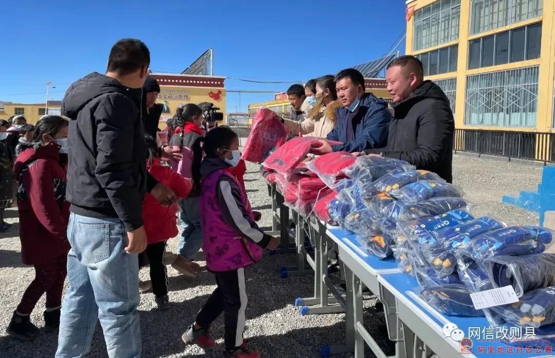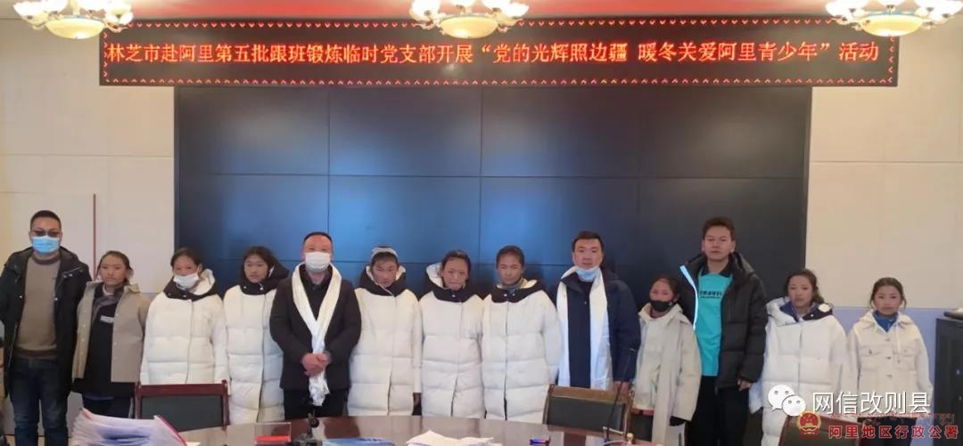 在全区上下认真学习贯彻党的十九届六中全会精神、助推党史学习教育“我为群众办实事”实践活动走深走实之际,林芝市第五批赴阿里跟班锻炼小组临时党支部聚焦群众急难愁盼问题,重点围绕服务“一老一小”,在寒冬来临前夕,“勇于担当、善于作为”,积极联系广州爱心组织和企业,在改则县开展“党的光辉照边疆 暖冬行动到阿里”活动,向改则县中学和古姆乡小学捐赠价值9万余元350余件冬装,将党的关怀、社会的关爱送到改则县青少年心坎。