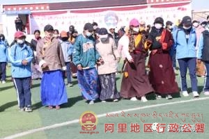 改则县中学全体师生欢聚在学校广场里,共同庆祝西藏百万农奴解放纪念日。首先是全校教师穿工作服,全体学生穿藏装升国旗、奏国歌、唱国歌,然后是初二(1)班学生代表普布卓玛在国旗下讲话,随之全校师生参观校德育室,接下来是改则县退休支部开展“新旧西藏”对比现身说教活动,最后全校师生在操场跳起欢快的锅庄。