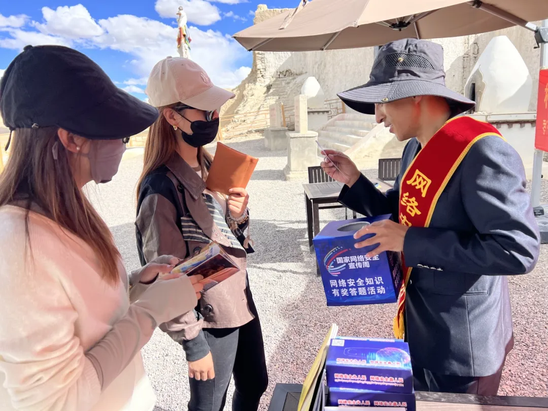 为进一步提升广大游客的网络安全意识和防范技能,严格遵守网络安全法律法规,深刻认识到网络空间不是法外之地,积极营造安全、健康、文明的网络环境,9月10日,札达县委宣传部(网信办)积极创新宣传形式,前往古格王朝遗址开展网络安全进“景区”宣传活动。