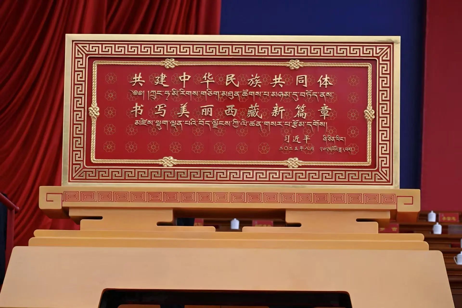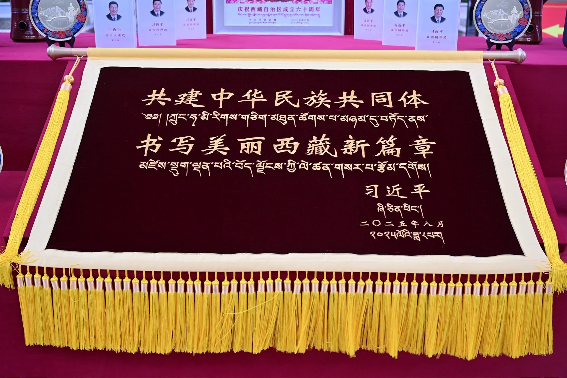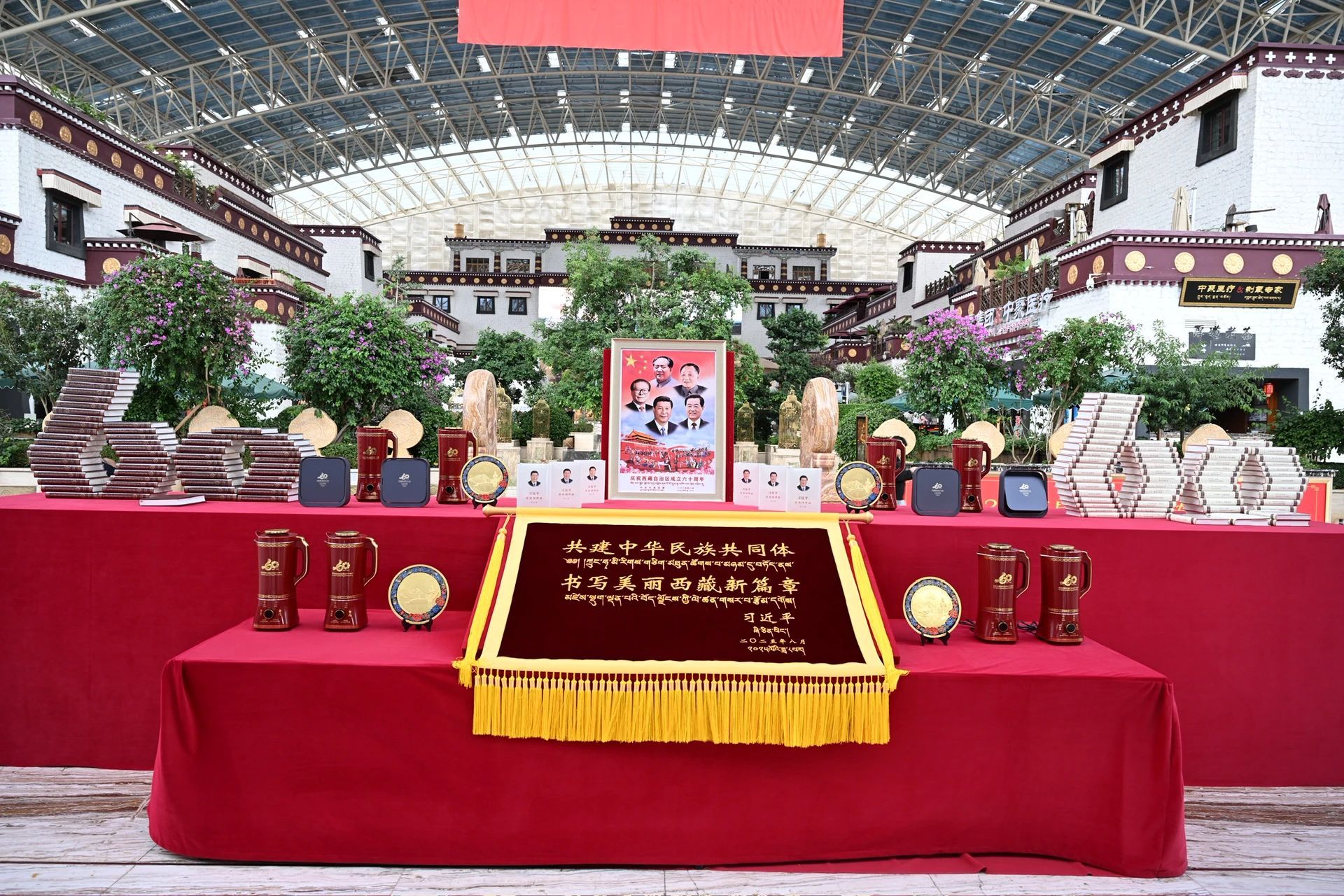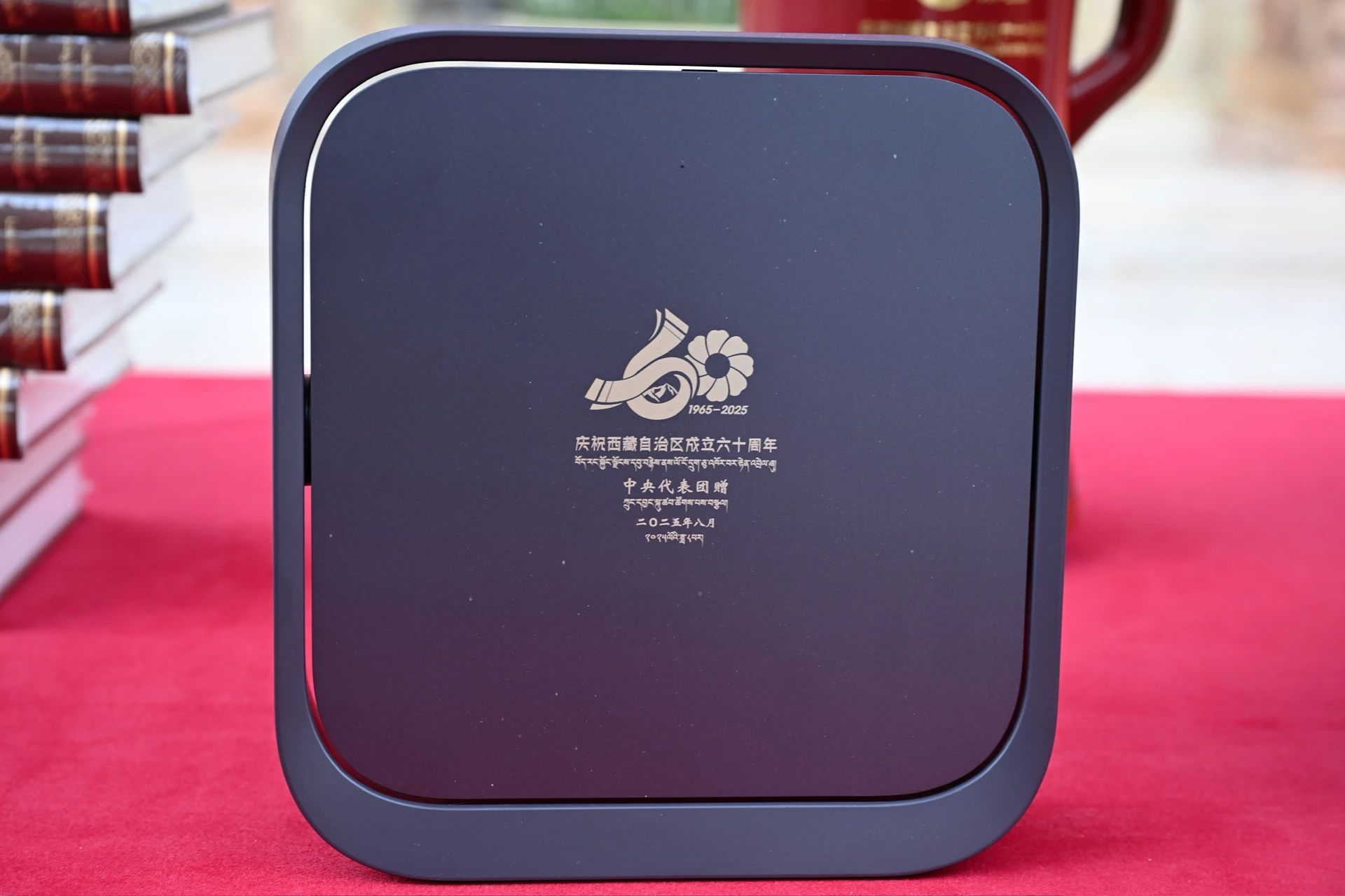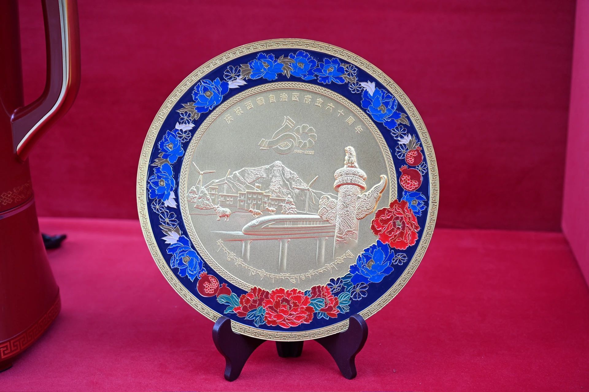 为表达以习近平同志为核心的党中央的亲切关怀和全国人民的深情厚谊,出席西藏自治区成立60周年庆祝活动的中央代表团向西藏赠送纪念品。