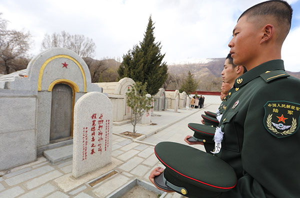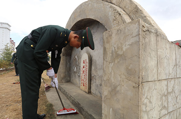 仪式结束后,官兵们瞻仰了先烈们的墓碑,一块块墓碑述说着一段段可歌可泣、感人肺腑的英雄事迹。大家追溯着“老西藏”的艰苦历程,感受着“老西藏”的高尚革命情怀,纷纷表示,作为新时代革命军人,一定会不忘初心、牢记使命、自觉传承“老西藏精神”、争做老西藏传人,扎根高原,矢志边疆,建功立业。