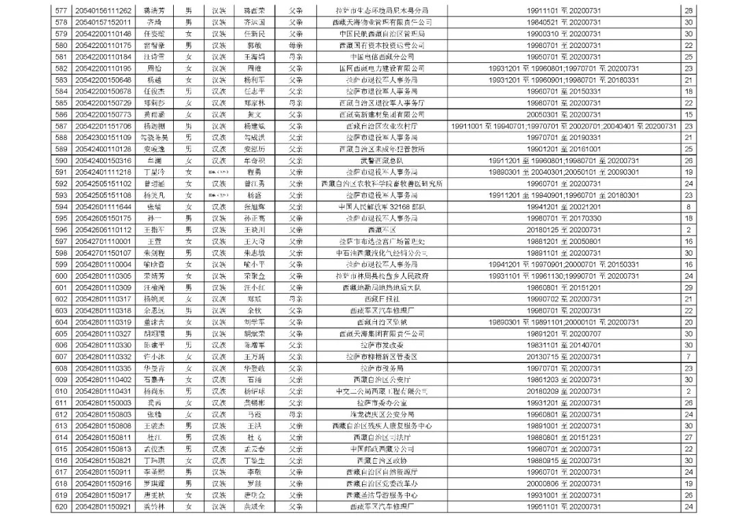 2020年西藏自治区普通高等学校招生全国统一考试享受照顾政策加分考生名单
