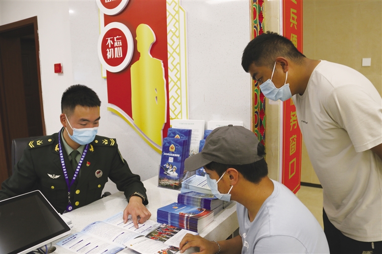 此外,为方便适龄青年报名应征入伍,今年5月,自治区征兵办正式进驻(市)地三级服务大厅,提供兵役登记、应征报名、体格初检、政治初考、政策咨询、流程解答等6项服务内容,旨在打造一个为民、便民、助民的“征兵工作一站式服务平台”,真正做到让信息多跑路、让群众少跑腿。据悉,全区目前已有5个市地征兵办完成进驻地方政务服务大厅并展开常态办公,其余两个市地也正在加紧推进。下一步,自治区征兵办将继续向县(区)、乡(镇)各级政务服务机构推广,全面提升我区征兵宣传工作的深度和广度。