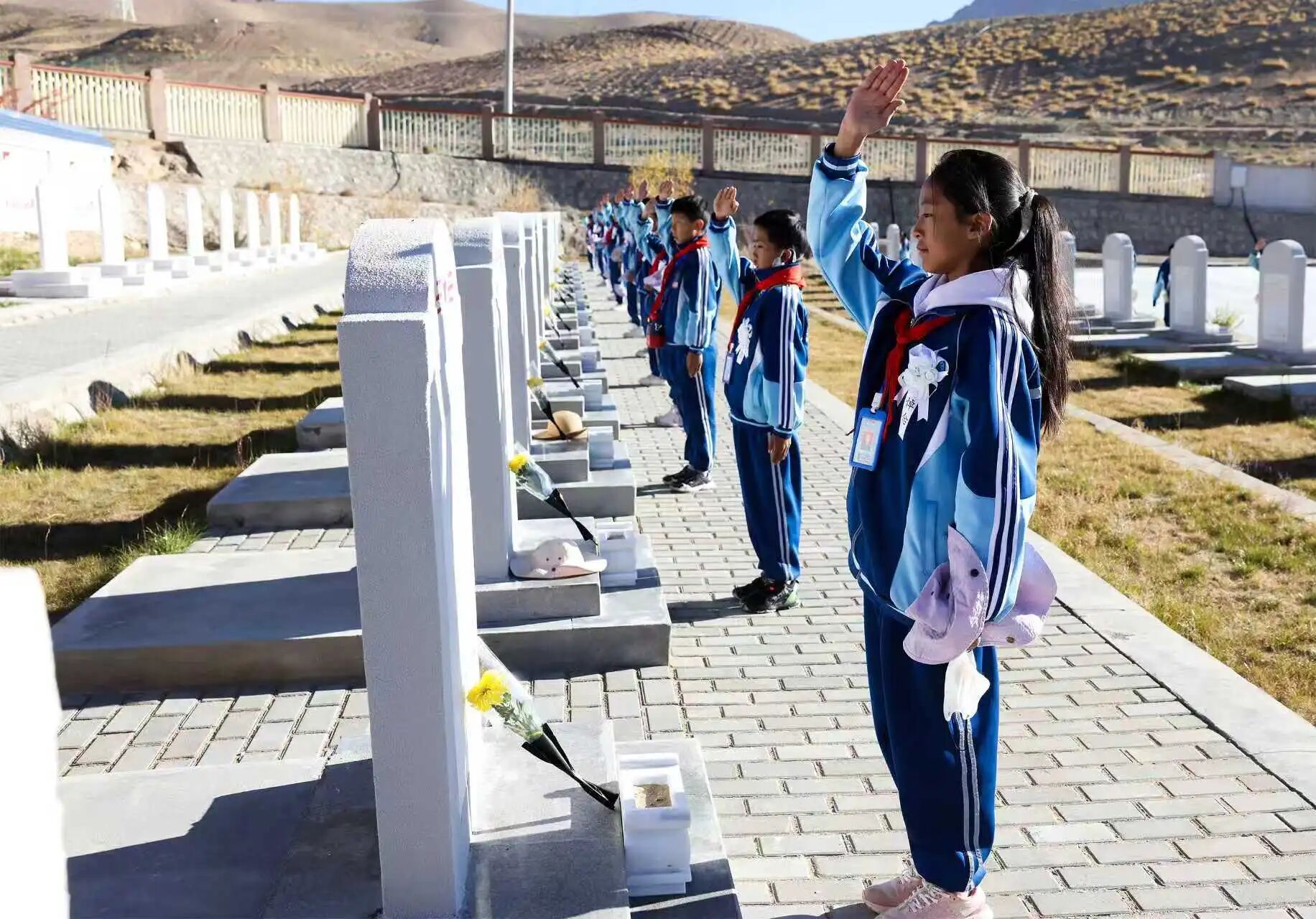 狮泉河烈士陵园气氛庄严肃穆,烈士纪念碑巍然耸立。上午10时许,伴随着激昂雄壮的《义勇军进行曲》,全场肃立,齐声高唱中华人民共和国国歌。唱毕,全体人员向为西藏和平解放、民主改革和社会主义现代化建设事业建立不朽功勋的革命先烈默哀。少先队员献唱《我们是共产主义接班人》。