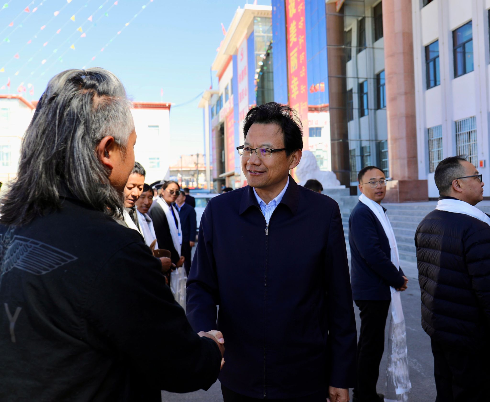 国庆、中秋“双节”前夕,地委书记索南丹增等地区“四大班子”领导看望慰问一线工作人员。记者 卓玛石确 摄