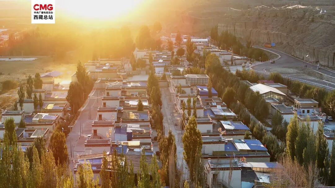 在西藏阿里地区札达县札布让村,耀眼夺目的金光,洒向这个喜马拉雅山脉西段的美丽村庄和2公里外的国家重点文物单位古格王朝都城遗址。
