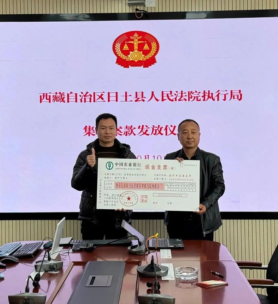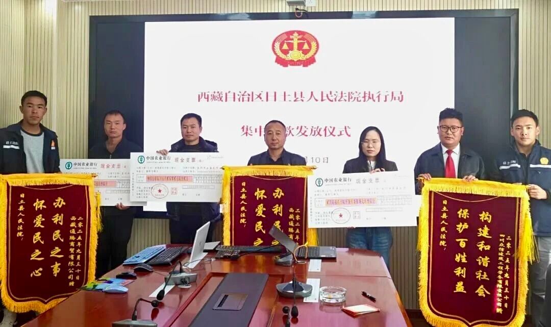 为进一步彰显专项行动成效,日土县人民法院组织集中案款发放仪式。仪式现场,执行干警逐一核对申请执行人信息,精准发放每笔案款,申请企业代表现场签收款项,对法院集中执行+快速兑现的工作效率表示肯定,其中一家企业代表表示:专项行动不仅帮我们追回了应收账款,更让企业感受到司法对实体经济的有力支持。