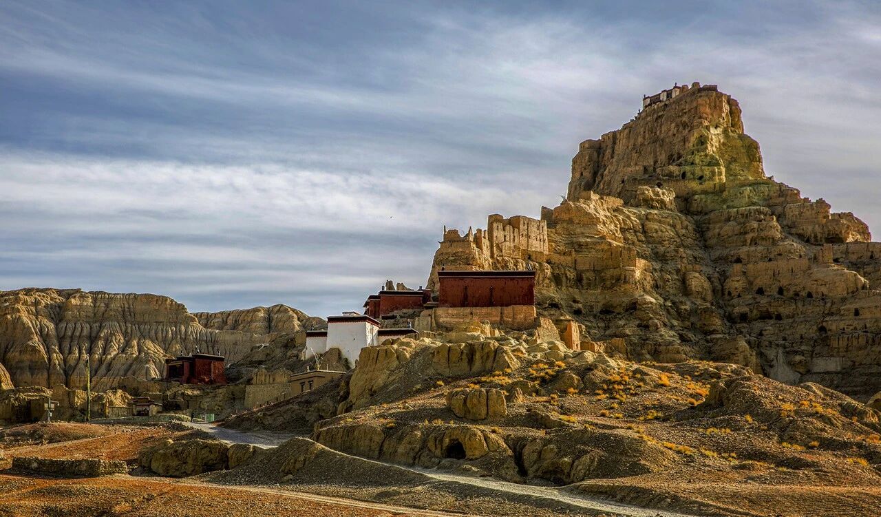 距离阿里地区札达县城约18公里处,已跨越千年的古格文化遗址公园静静矗立在象泉河畔一座土山上。史料记载,古格王朝创立于公元10世纪前后,曾雄踞西藏西部700余年。