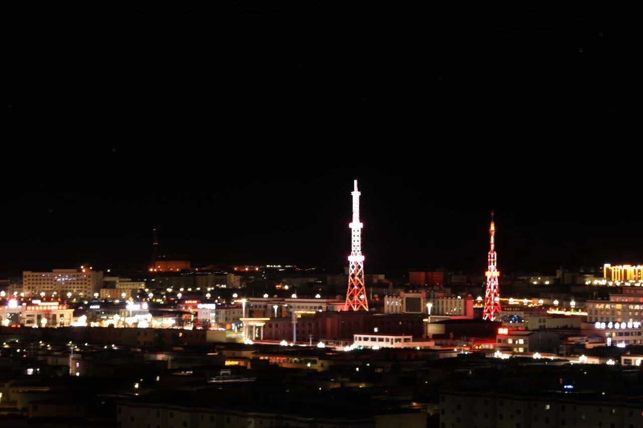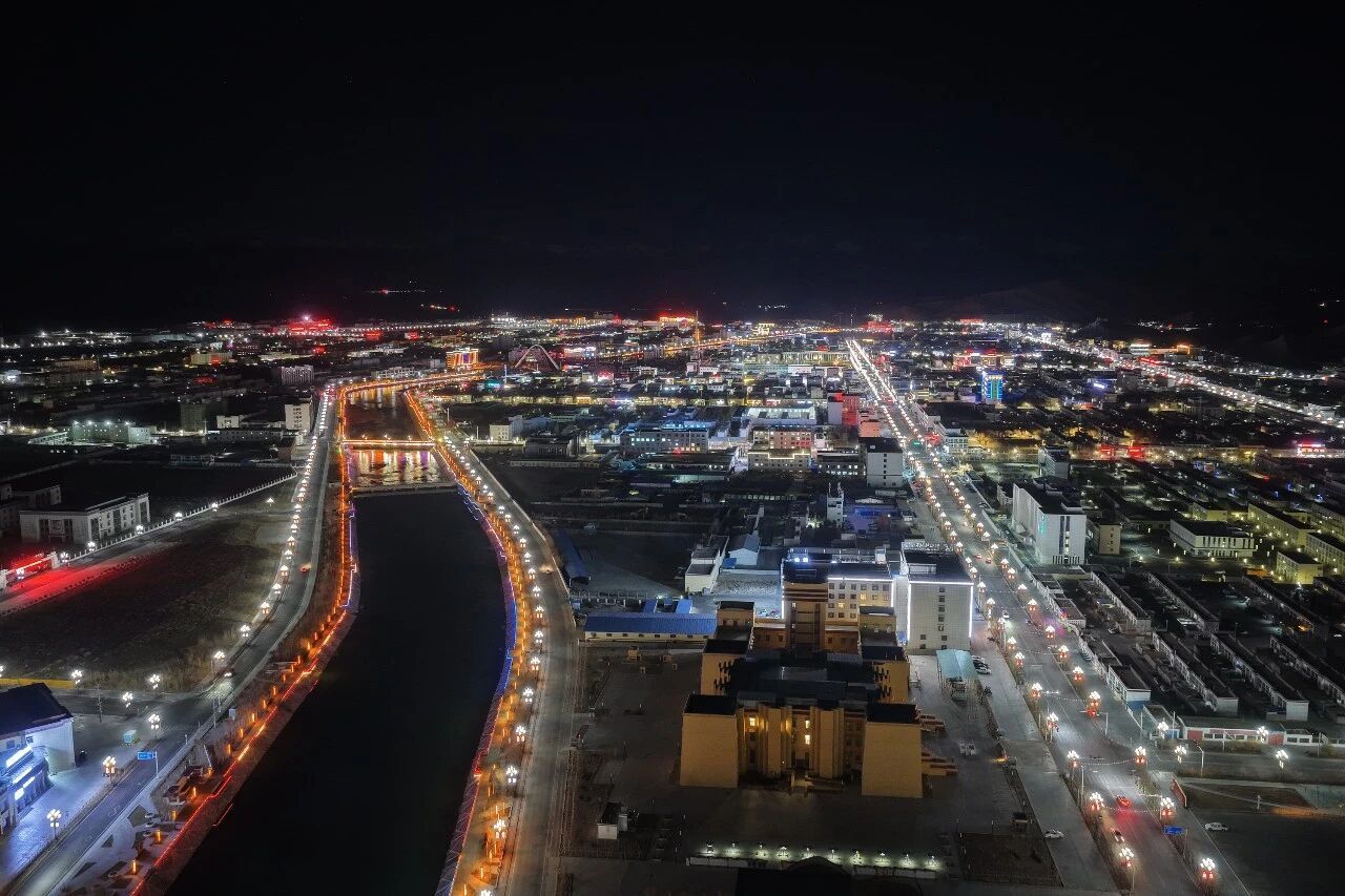 夜幕下的狮泉河镇,灯火点点,在海拔4500米的高原,如同海市蜃楼。
