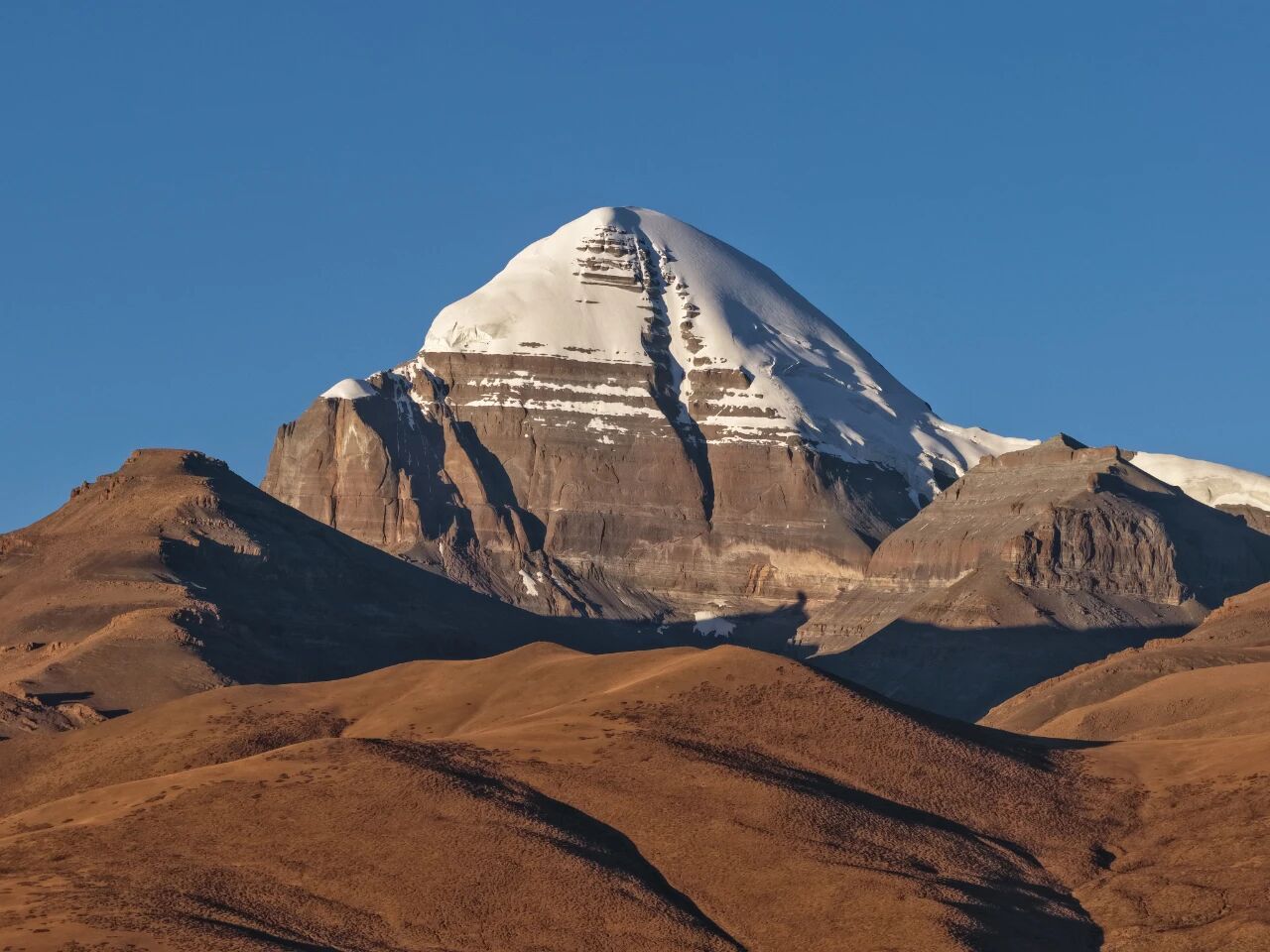 “天上阿里” 并非虚名——这里平均海拔4500米,是名副其实的“世界屋脊之屋脊”。冈仁波齐金字塔状的山峰终年积雪,被藏传佛教、印度教等多个宗教尊为“世界中心”。