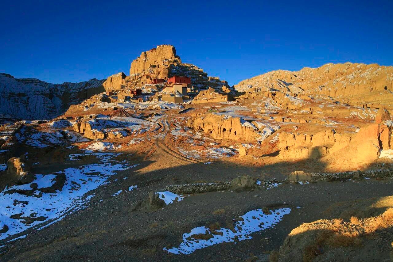古格有着辉煌的日出日落,金色的阳光缓缓照亮土林和遗址,仿佛穿越回千年前的辉煌王朝。