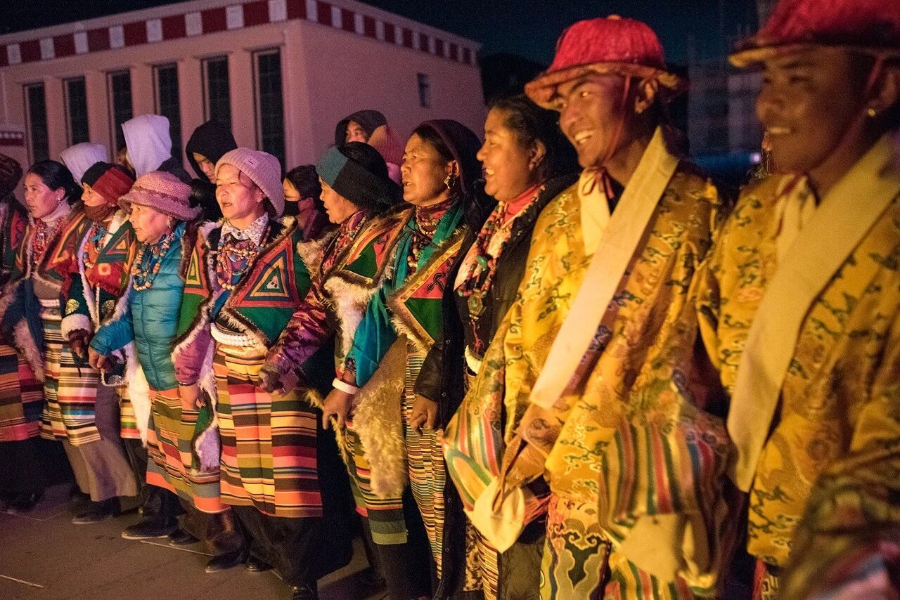 宣舞起源于阿里地区,属于古代西藏宫廷乐舞的一种,在札达、普兰均有流传。宣舞融合了说、唱、跳等多种艺术元素,如今已成为阿里的文化名片。这种舞蹈的一招一式都有固定的模式与要求,保存了古代藏族舞蹈的原始风貌。
