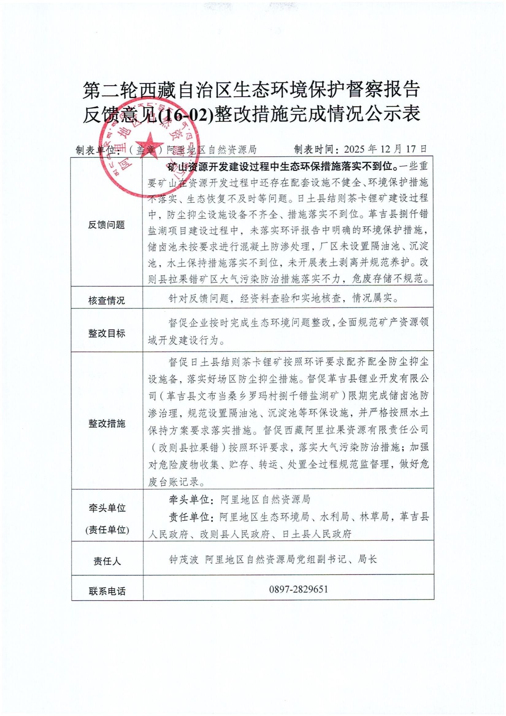 第二轮西藏自治区环境保护督促报告反馈意见(16-01、02、03)整改公示表