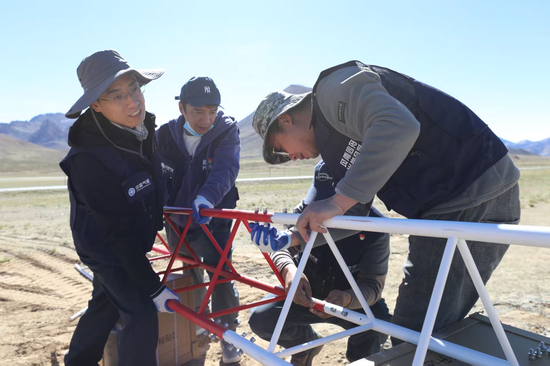 9月11日,孟伟强与工作人员一同进行位于海拔4634米的拉美拉达坂气象观测站建设。吴敏摄影