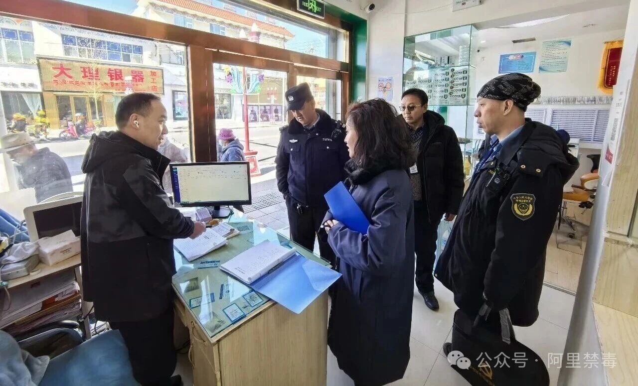 为严防麻醉药品、精神药品、含麻黄碱类复方制剂等特殊药品流入非法渠道,2月11日,阿里地区禁毒部门联合市场监管、卫健委等相关单位,对辖区内医院、药店、诊所等开展节前专项检查,并同步开展禁毒宣传。