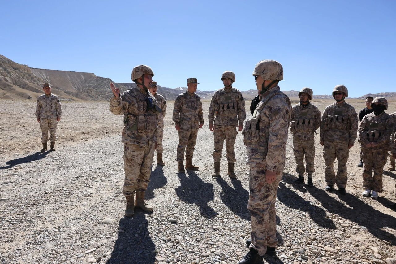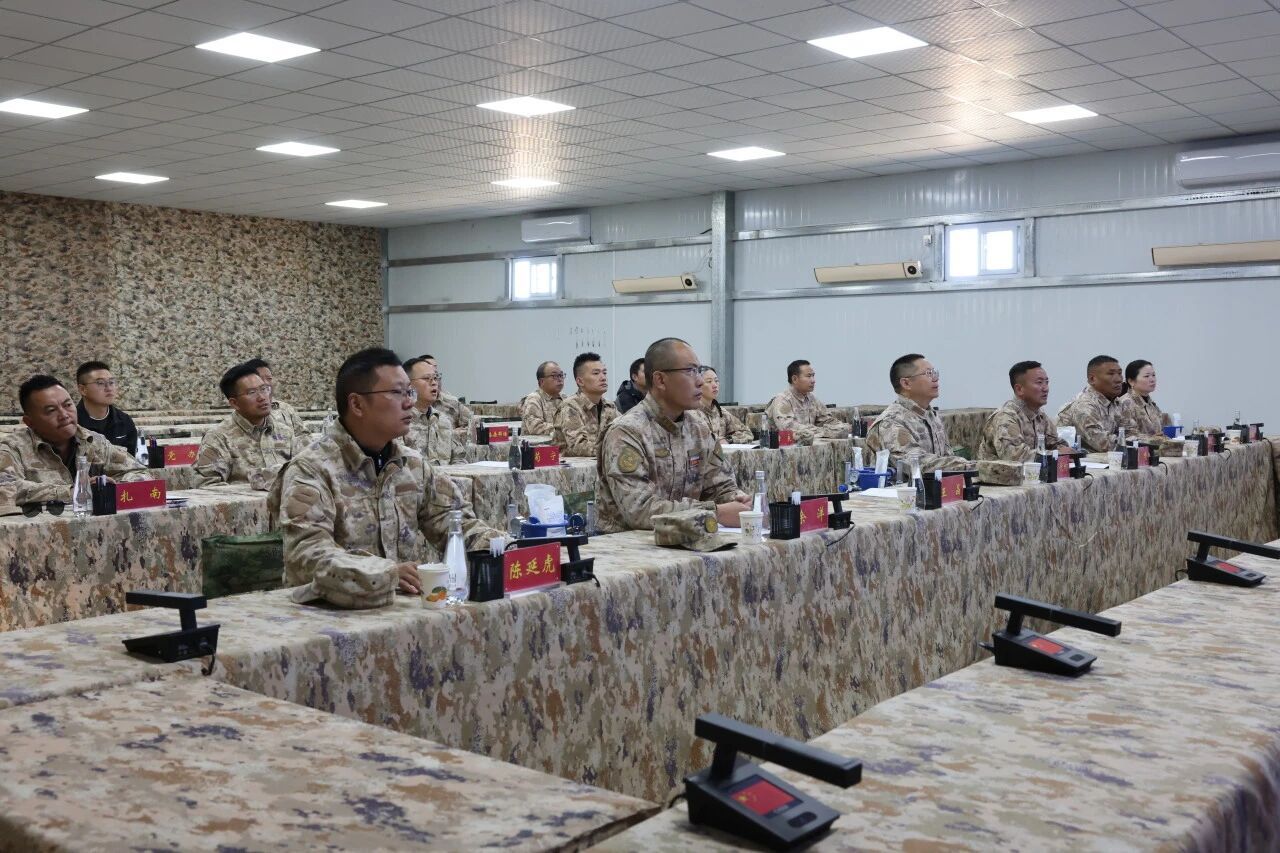 在训练场,全体参加人员头戴钢盔、身着多功能战术背心,近距离观摩新型武器装备,学习轻武器分解结合,亲身感受了解军改以来新装入列、新质战斗力生成、整体实战能力跃升情况和现代化军事装备的发展与应用,体会练兵备战的浓厚氛围。