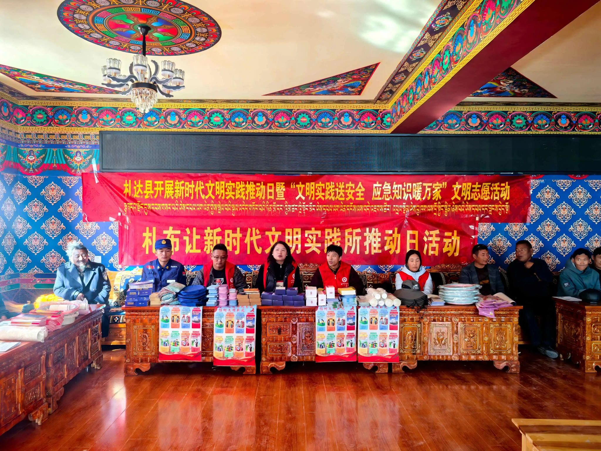 为切实提升农牧民群众安全意识与应急能力,进一步推进札达县新时代文明实践推动日,11月5日,札达县新时代文明实践中心联合县应急管理中心、县消防救援大队、札布让新时代文明实践所等相关部门深入札布让开展“文明实践送安全 应急知识暖万家”文明志愿活动。活动以“集中宣讲+定点宣传+入户服务”相结合的形式展开,将安全知识与文明服务精准送达农牧民群众身边,参与的农牧民群众50余人。